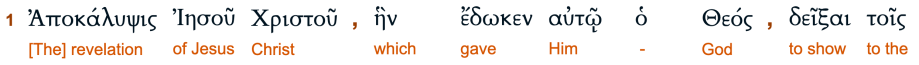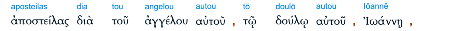 You will probably recognize some of the Greek words since many of our English words come from the Greek — revelation = apocalypse / Christ = Christos / God = Theos / servant = doulos / angel = anggelos —